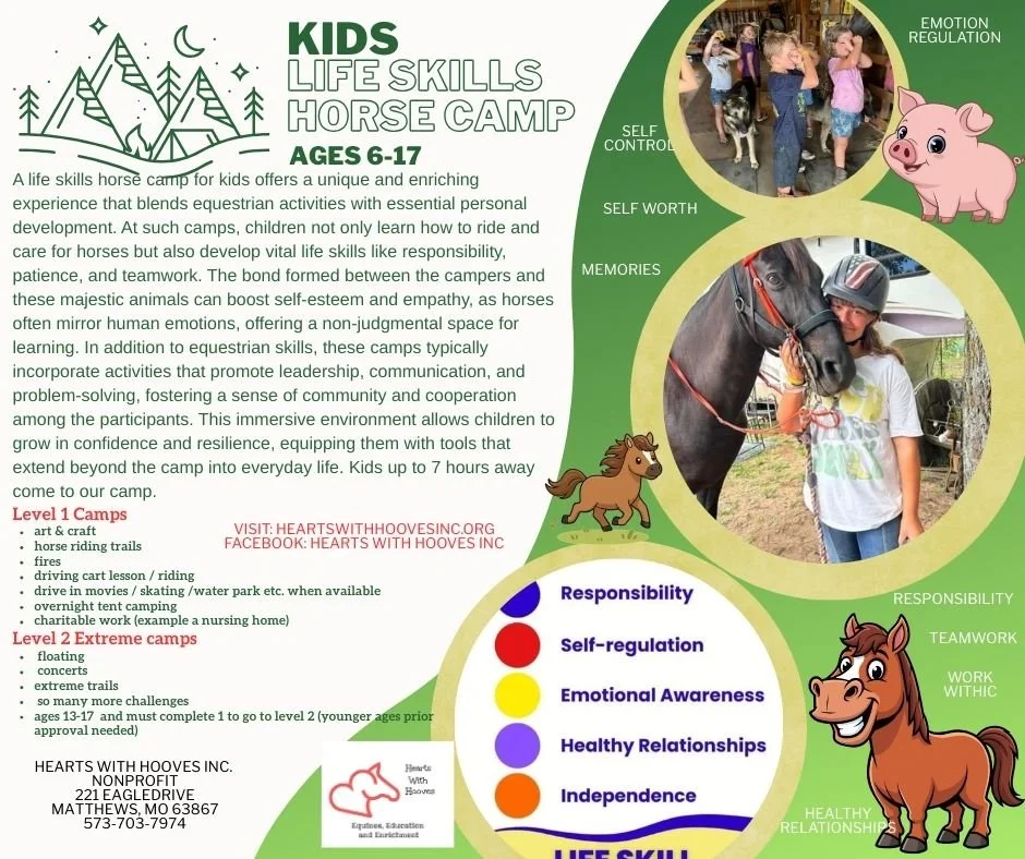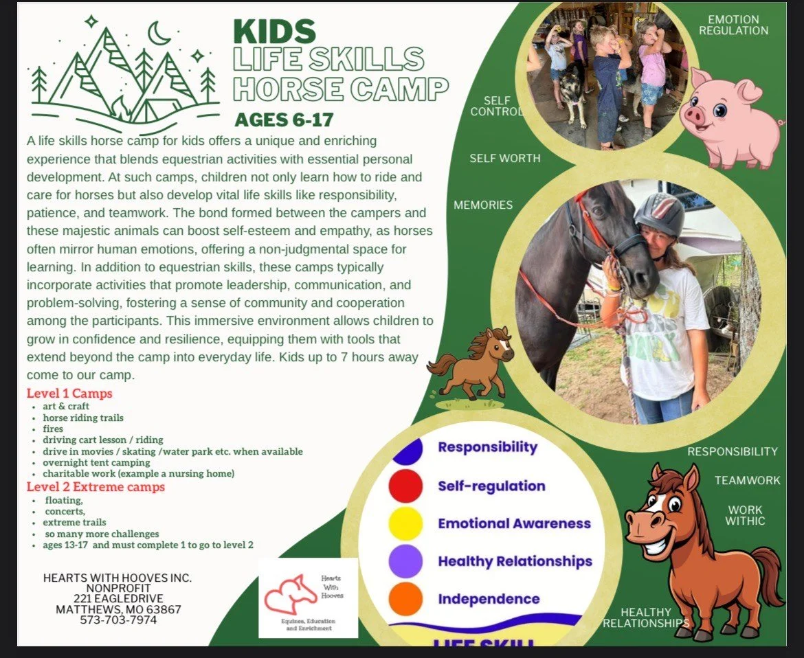 A life-skills horse camp for kids offers a unique and enriching experience that blends equestrian activities with essential personal development. At our camp, children learn to ride and care for horses while developing vital life skills such as responsibility, patience, and teamwork. The bond formed between campers and these majestic animals boosts self-esteem and empathy, as horses often mirror human emotions and provide a calm, non-judgmental space for learning.
